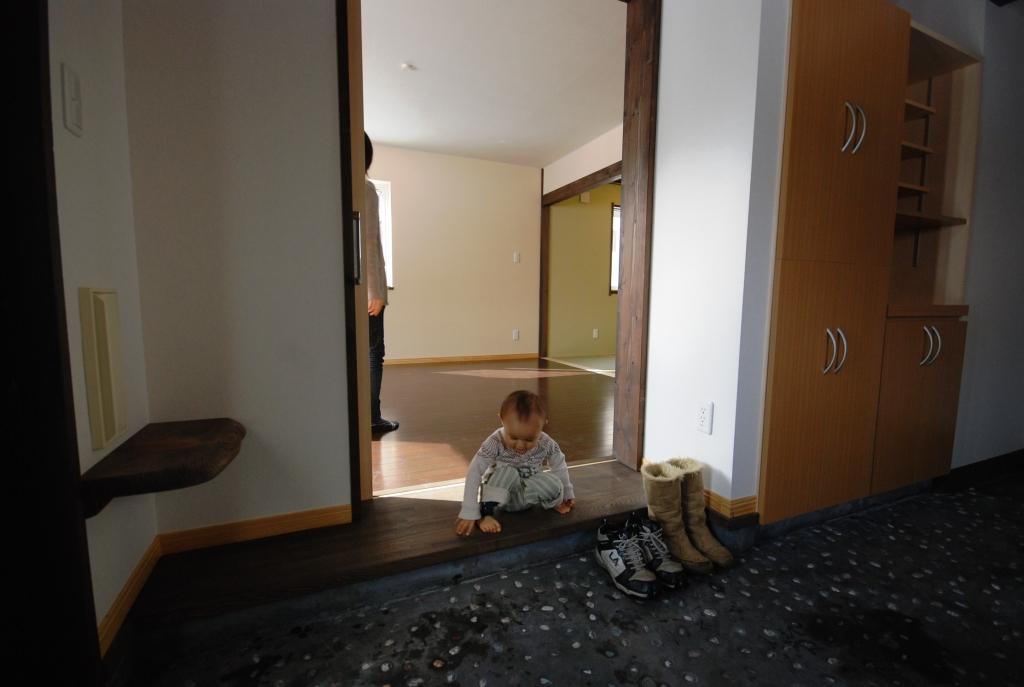玄関を開けたら土間とキッチン、というプランは衝撃的。でもそのおかげで広いキッチンとリビング、さらにタタミルームが一階に実現できたほか、子どもたちの様子をお母さんがいつも把握できる。狭小住宅とは思えない広々とした空間は魅力的。予算を徹底して抑えた中でも和風の建具が高級感を醸し出している点もさすが北一タカハシ建設。この物件よりも間口が狭い住宅など、現在も狭小住宅が2棟着工中とのこと。予算は限られていてもご夫婦の要望が十分に網羅されていたこと、断熱性能の高さによる光熱費の安さ、そして住み心地が今後実感できるという意味で、満足感の高い幸せな住まいが実現できたと思います。