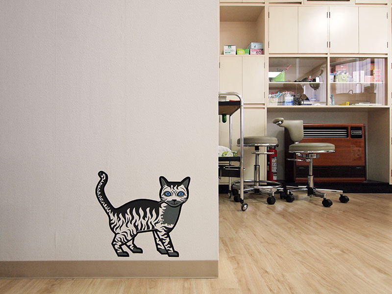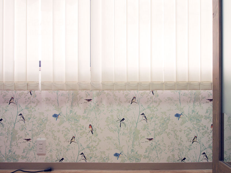 治療室の壁にもカワセミ、ヤマセミ、キビタキなど北海道でもおなじみの鳥をモチーフにした個性的なクロスが使われています。