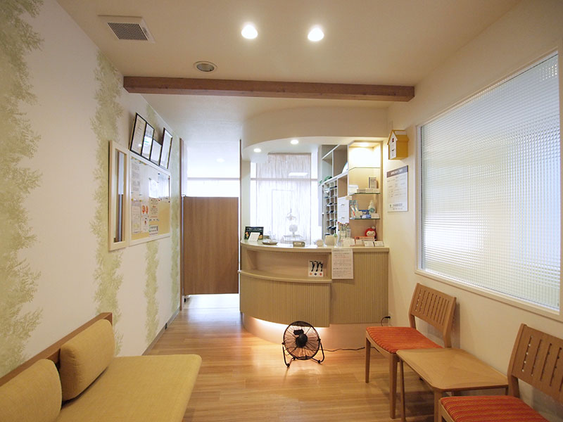 院内のインテリアは病院っぽくありません。受付カウンターや建具などを白木で統一した暖かみのあるモダンな空間。