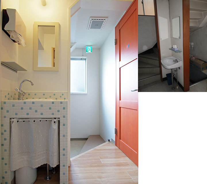 リフォーム前の建物は真っ白な壁にピータイルの床。「病院っぽい無機質で冷たい感じが気になっていた」と小林さんはいいます。