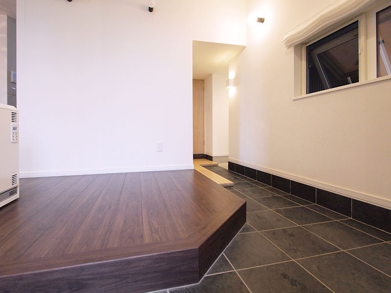 玄関奥のスペースには愛犬のための部屋があります。これまでずっと外で飼っていましたが、年をとって雪の多い江別では外飼いはかわいそうだと思い、ご家族たっての希望で作ったそうです。窓から外も見えますし、排水口もついていてシャンプーもできる部屋になりました。