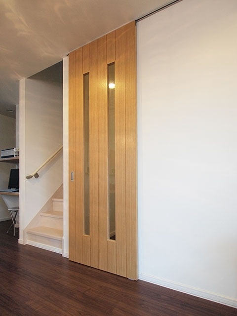 リビングと玄関を仕切るのは、奥様が「憧れだった」という天井まである大きな造作ドア