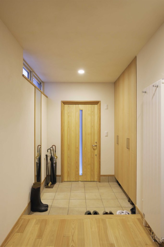 オール電化、セントラルヒーティングで家じゅうどこにいても暖かく、「朝起きた時に寒くないのがうれしい。玄関まで暖かいと親が驚いていました」と奥様は言います。
