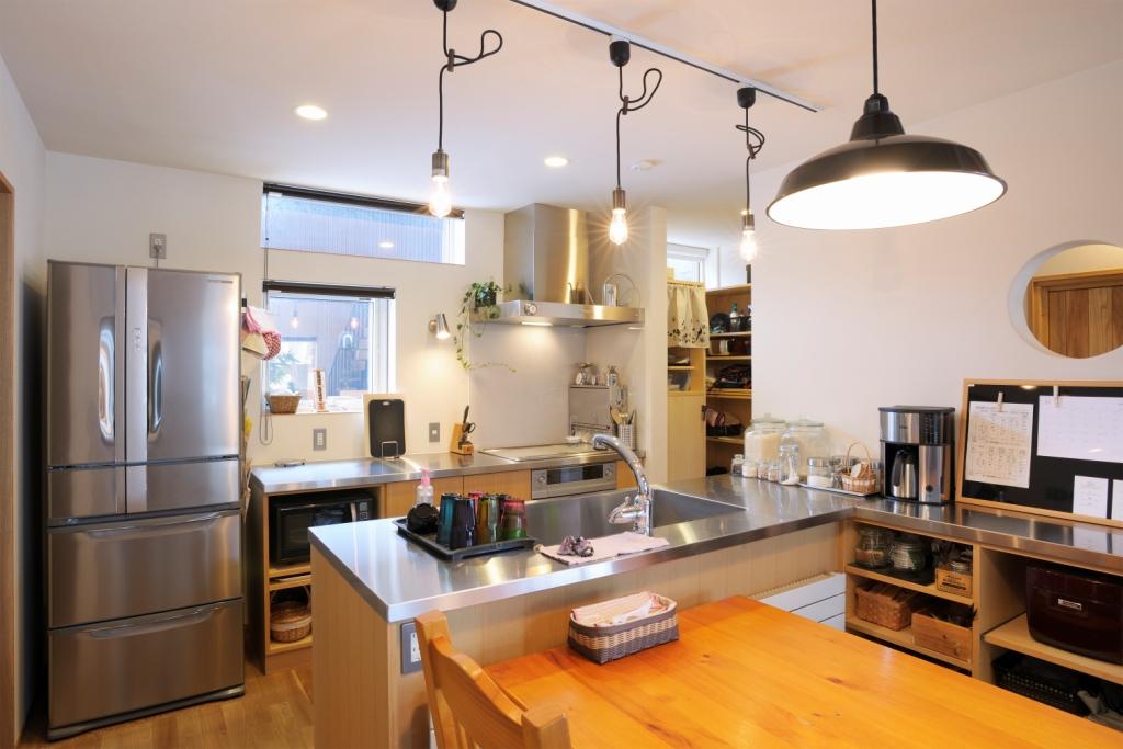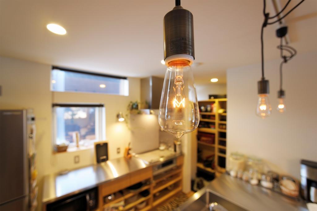 hokushin20130216 (4).jpg キッチンは作業スペースを広くとった対面型。漁業ランプを思わせるクラシカルな照明は、奥様がインターネットで見つけ、取り寄せた「後藤照明」製。 hokushin20130216 (10).jpg