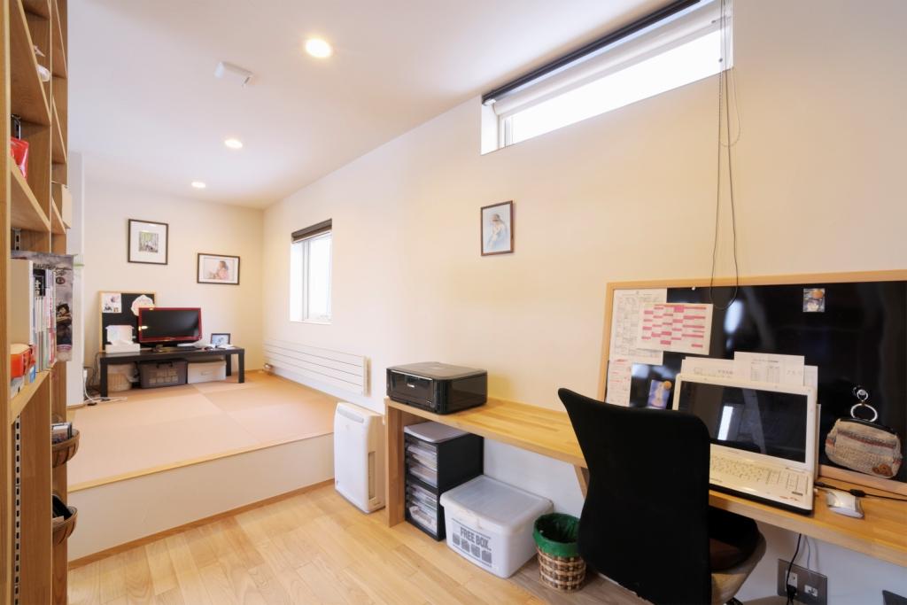 パソコンや書類、本などの設置スペースもプランニングの際に検討済み。