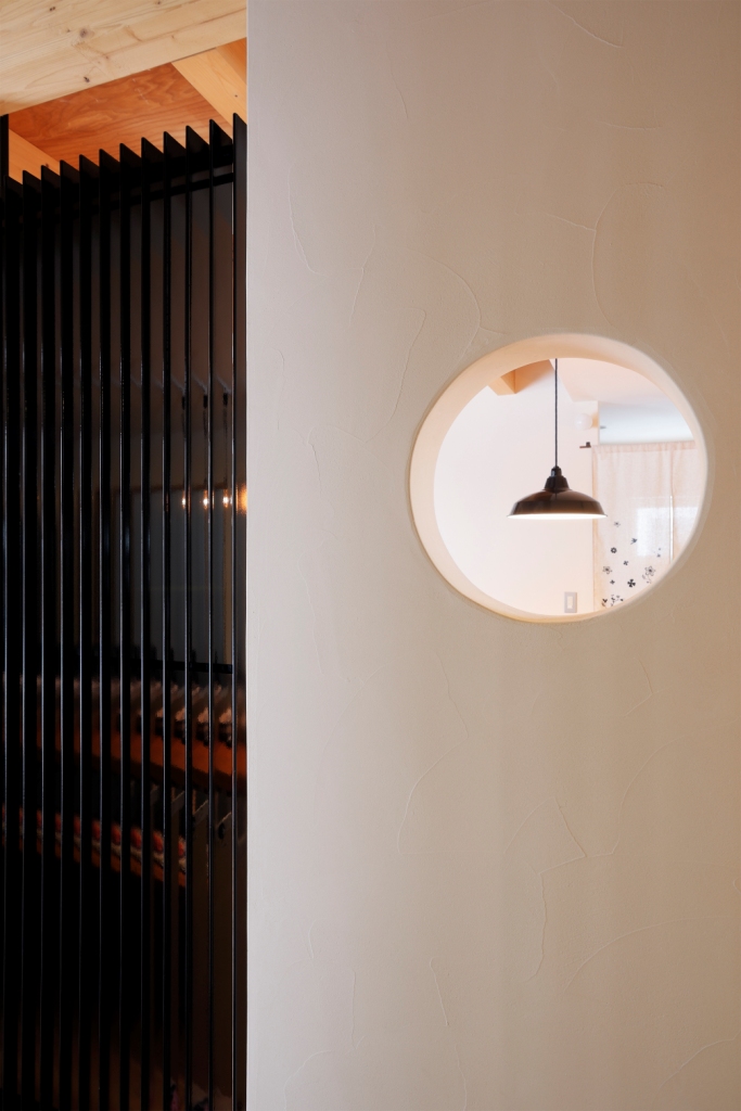 玄関とキッチンの間の丸窓は、実は完成後に開けたもの。建設工事が始まってから、現場見学などをしていくうちに新たな要望が生まれることもあります。こうした時にも、遠慮なく担当者や大工さんに相談できる雰囲気があるかどうか、そして快く相談に乗ってくれるか・・・。