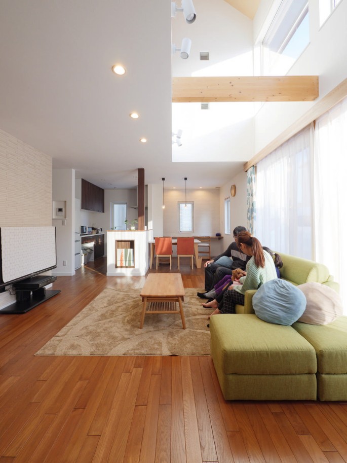 実はこのF邸。札幌の工務店「株式会社ブレイン」が以前モデルハウスとして公開していた住宅を、Fさん夫妻が購入したものです。前述の太陽光発電などは既に実装されていて、光熱費ゼロを実現できる住宅性能・仕様や吹き抜け空間など魅力満載にもかかわらず、大手ハウスメーカーの住宅とさほど差がない価格だったことにもF夫妻は魅力を感じました。ブレイン札幌の魅力