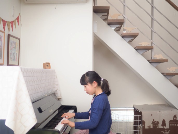 以前暮らしていたマンションには子ども部屋はありましたが2人で共有でした。今は姉弟それぞれに個室があります。こちらはお姉ちゃんの部屋です。