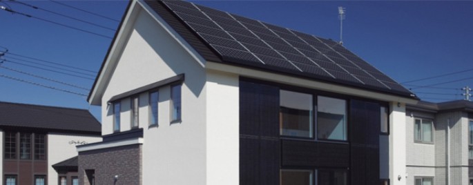 この家。屋根だけでなく、壁にもソーラーパネルが付いています。つまり、雪が積もる冬も発電します。実際にかかる光熱費と冬場も含めた発電量を予測すると十分「光熱費ゼロ住宅」は実現できそうです。