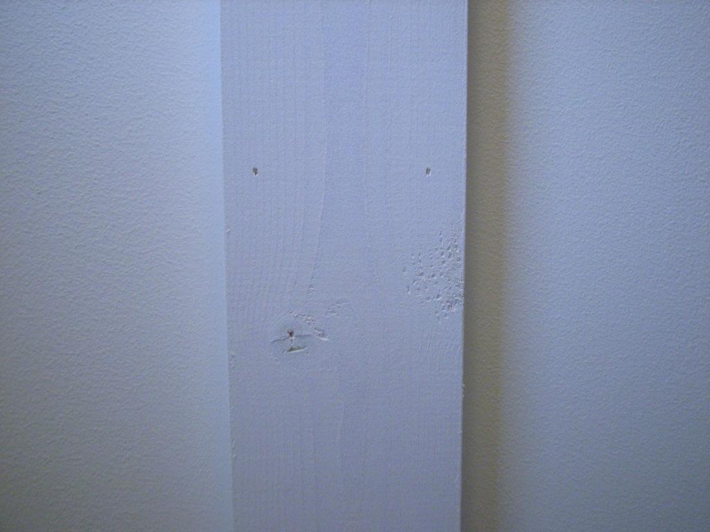 便座に座ると目がバッチリと合う。毎朝、ごあいさつしております。ほらほらコレコレ。どう見ても「ひつじ」でしょう?めんこ・めんこちゃん。柱の節と木目が鼻と毛並みを作り、ビスの跡がつぶらな瞳...と絶妙なバランスなのだ。