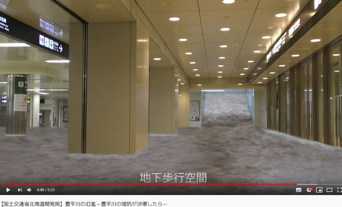 破堤40分後→すすきのから地下鉄ホームに水が流れ込み浸水と停電。地下街で犠牲者発生。