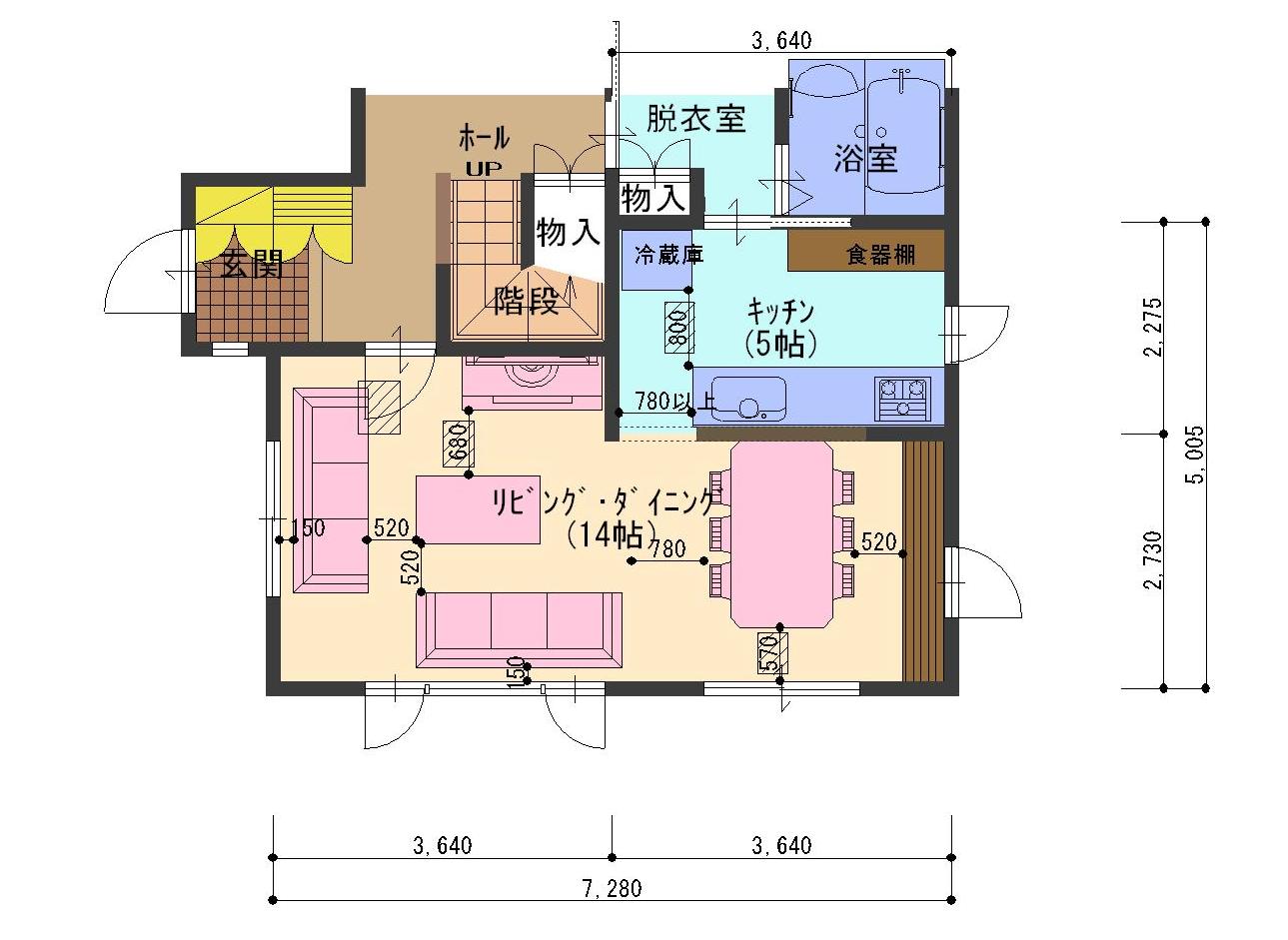 「何帖ほしいですか?」みたいな聞き取りで出来上がったプランに、前項のPointでお話した通路幅を取りながら、後から冷蔵庫を設置したり、気に入った食卓テーブルを置こうとすると、どこかが狭くなったりはしませんか?