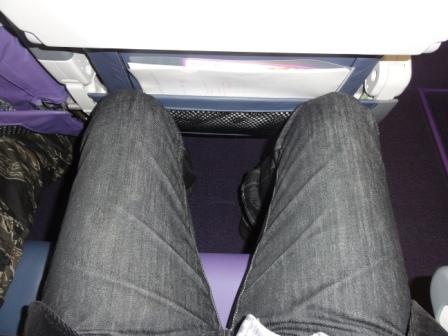 身長182センチの私の足下。深く座ってやっと正面を向ける感じ。札幌→関西空港は2時間弱だから少々きつい。関西空港~福岡なら1時間。余裕かな・・・。こういう感覚は体系、狭いところが平気かどうかといった個人差にもよる