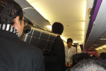 さて朝5:25分にバス停に着。6時15分に関西空港に着き、すたすた歩いて搭乗手続きしたらまた機械がエラー。予約番号を入力して無事通過。しかしボディチェックの際に結構混んでまして・・・。列に並んで待つしかない状況なのに、ピーチのスタッフがせわしなく「まだ手続き終わってない方いらっしゃいますか!」などと言ってくるのでまるで私が遅刻しているみたいな気分に・・・。実際は自分が機内に乗り込んでから10分後くらいに乗り込んでくる人もいたので、なぜあんなに焦らされたか少々微妙な心境でした。