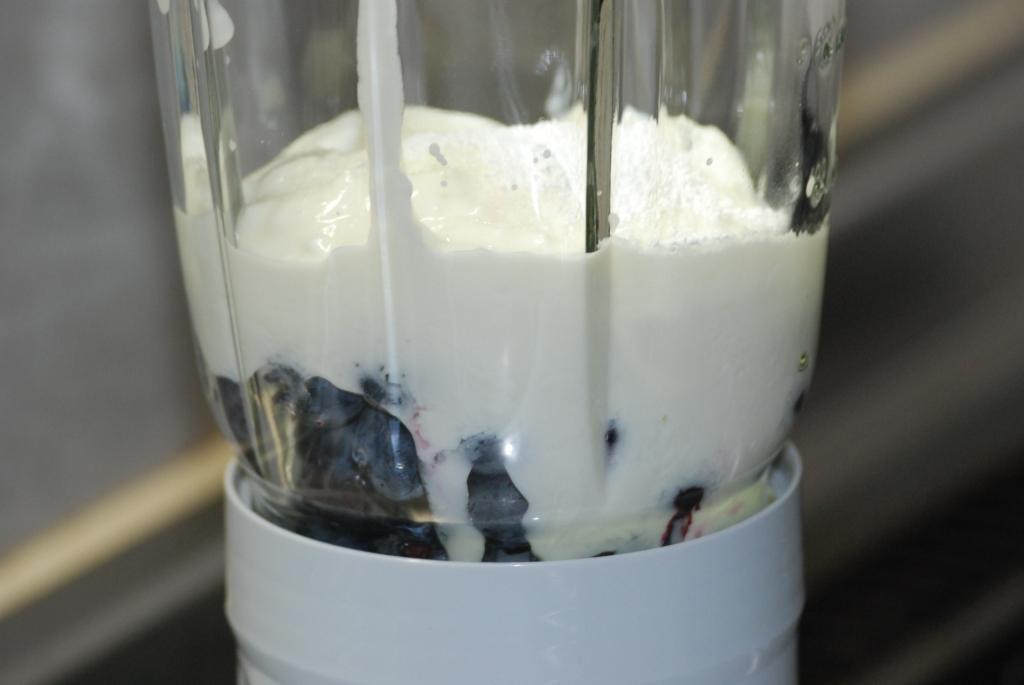 この写真に写っているのが「ブルーベリーの丘くりはら」で2011年秋に収穫された冷凍ブルーベリー。他にヨーグルト、水、砂糖、ミキサーがあればできます。