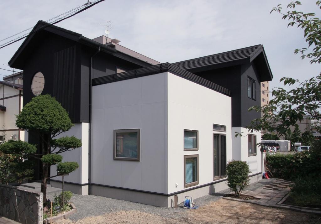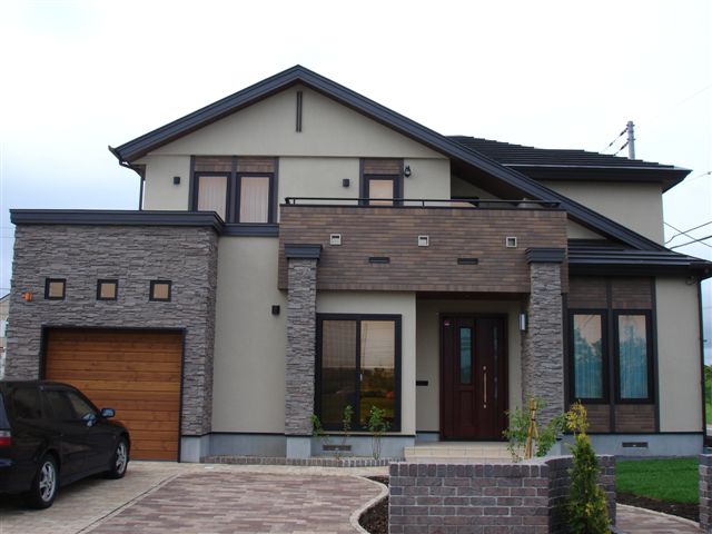 このケースで良くあるのは、屋根のライン(軒先など)の直線をきれいに見せると外観が美しくなります。なるべく途切れずにできる限り長く連続させた直線というところがポイントです。中途半端な直線はNGです。でも現実的な家の大きさを考えるとこれは結構ムヅカシイ、、、難易度高めです。北海道でも新興住宅地などでたまに見かけますね!⑤ワンポイントアクセント