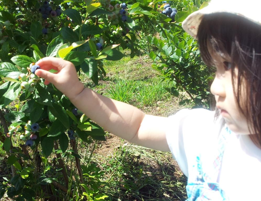 ヨーグルトにして飲み続けていた2歳児は、そのブルーベリーを摘み取り