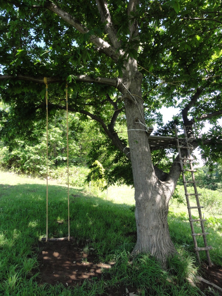 特に暑い日に、大きな3本の栗の木木陰で、海を眺めながらブランコに座っていると、