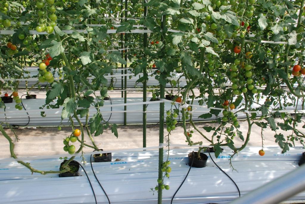 ミニトマトも栽培してました。新品種の苗を導入し、水と肥料はタイマーでやり、