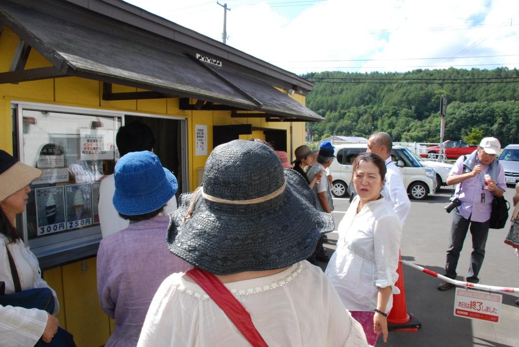 ひっきりなしにお客さんが訪れ3人のスタッフが必死にパフェづくりしていました。
