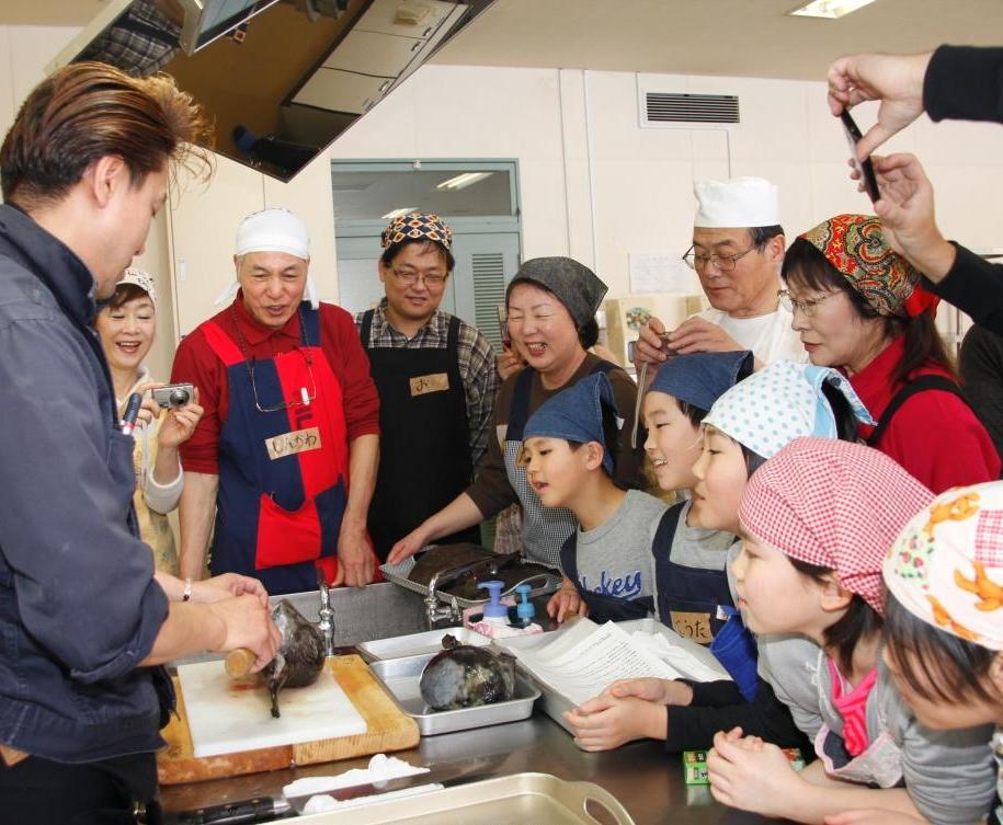 2013年1月のるるる♪キッチンガーデンくらぶ主催の料理教室は藤女子大学の花川キャンパスで開催。特別講師に鮮魚鯔背の小野社長をお招きしました。