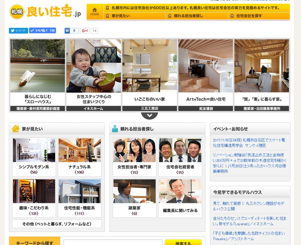 当社は、取材・編集・撮影・記事制作を軸とする専門紙であり、編集プロダクションです。その取材編集力を活かして、この「札幌良い住宅jp」を始め、いろんな企業のサイト制作を受託させていただいております。当社は約10年前、住宅雑誌を廃刊して、その編集体制・スキルをwebにシフトし、以来、地元の住宅会社と連携し、このポータルサイトで多くの人に住まい作りの大切なポイントを発信。多くの方がこのサイトを閲覧し家作りのヒントにしていただいています。ここで学んだのは「コンテンツ」の重要性です。