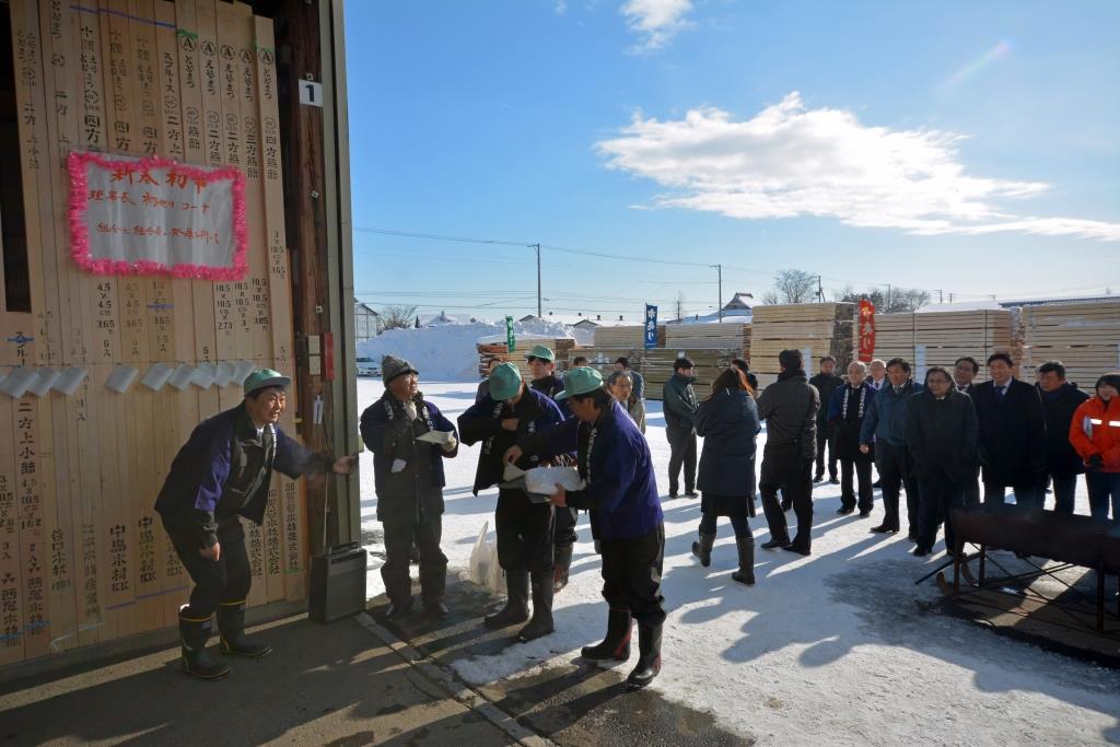 昨年は4つも台風が北海道に来て、原木の集荷が大変だった。でも住宅着工は伸びた。今年も忙しくなるだろう。道内はトドマツが主伐期を迎えた木がたくさんある。山元の工場は一層頑張るので、たくさん木材買って欲しい、という趣旨でした。
