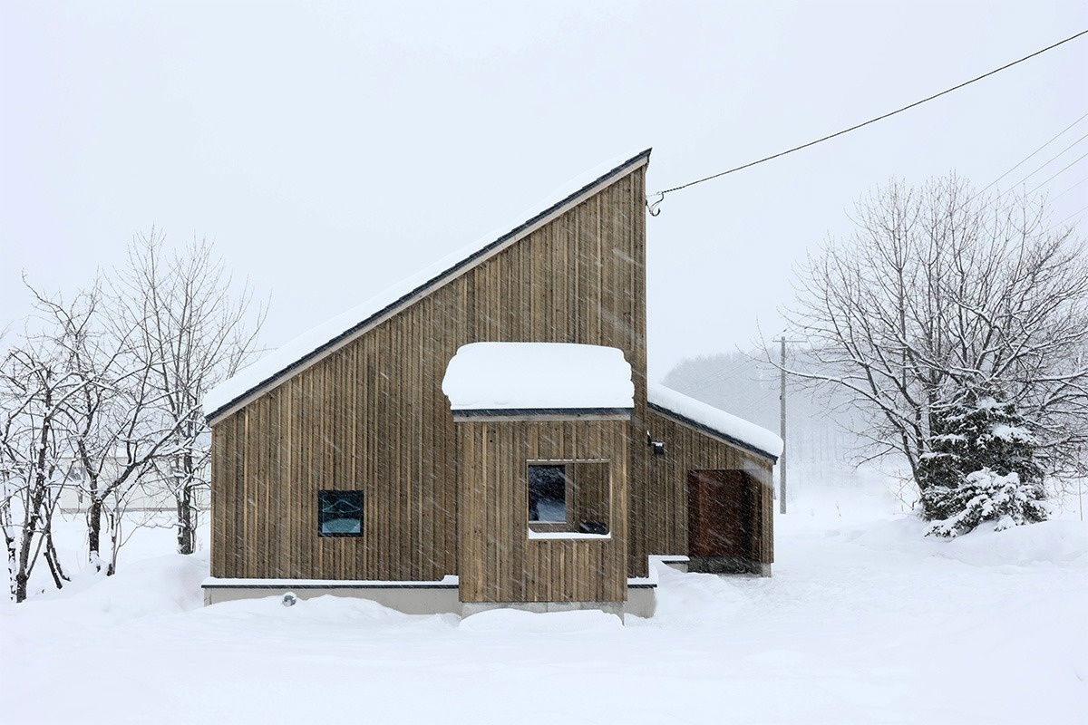 北海道のほぼ中央に位置する大雪山連峰「十勝岳連峰」の麓には、美しい天然水と写真で知られる東川町があります。メインストリートを真っすぐ進むと、真っ白な雪景色の中に板張りの住宅が浮かんでいます。東京で活躍するフォトグラファーの萬田康文さん夫婦の邸宅です。釣り仲間でもある建築家のmonokraft・清水徹さんの住む東川町に新居を建て、移住を実現しました。施工は、自然素材を使った家づくりを得意とする旭川の雅建築企画さんです。