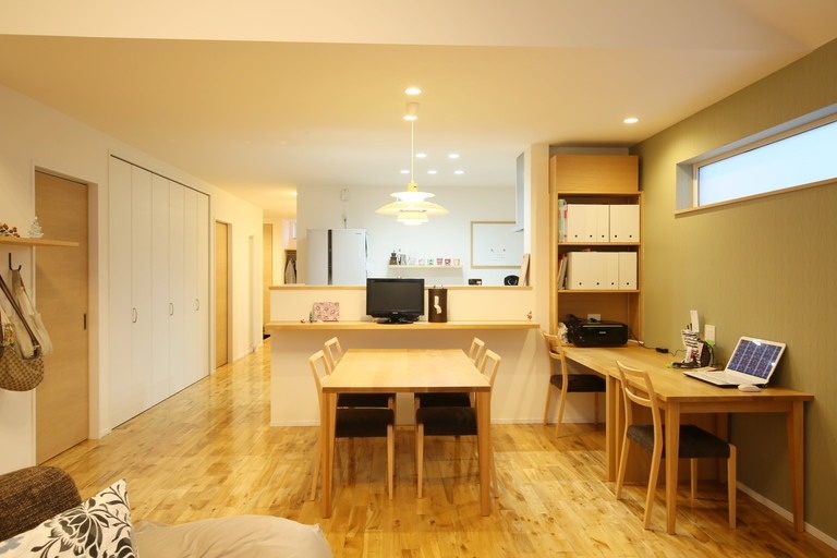 平屋だから家族をそばに感じられる 今と将来を見すえた家 リビングワーク/札幌市T邸