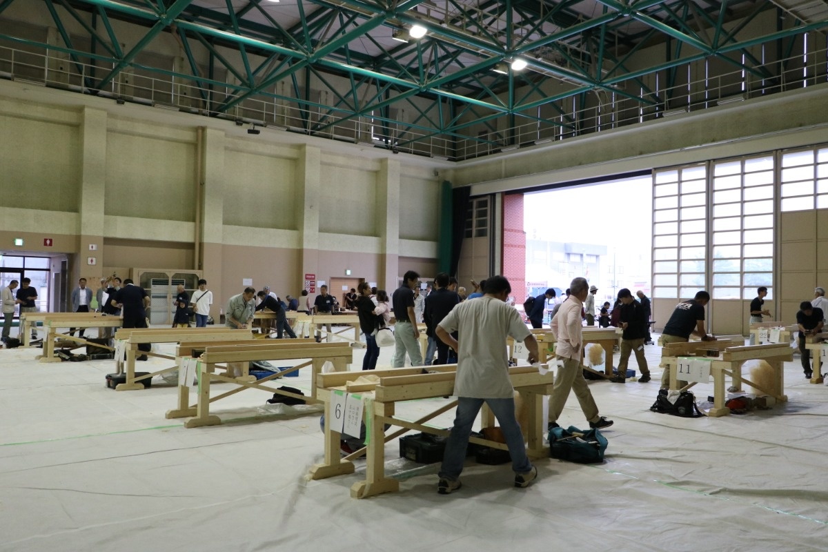 競技は切れ目なく削り出された削りくずを3か所計測し、マイクロメートル(1マイクロメートルは0.001mm)単位の薄さを競います。iezoom掲載工務店さんからも若手はもちろん、中堅・ベテランを含め、多くの大工さんが参加しました。