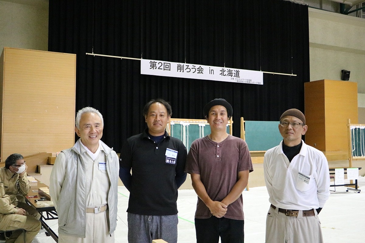 「削ろう会」は北海道ビルダーズ協会が主催、大工ネットワーク北海道と北海道職業能力開発協会の共催で行われています。