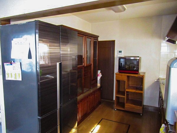 【BEFORE】I型キッチンのあるリフォーム前。収納は家電、食器ともに個別に既製品を使っていた(写真は同社HP施工例より)。
