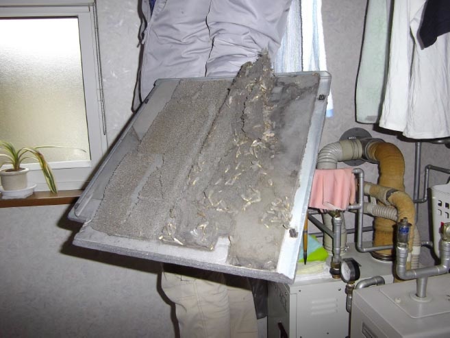 換気フィルターにびっしり着いた汚れ 写真提供:三浦眞オフィス(パッシブシステム研究会事務局長)