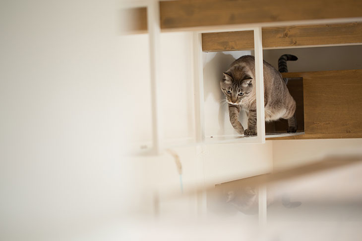 家中に張り巡らされたキャットウォークを自由に移動する猫ちゃん。札幌市のWさんは、第一に愛猫がのびのび暮らせる家を希望し、ハウジング光陽で夢の、マイホームを実現しました。