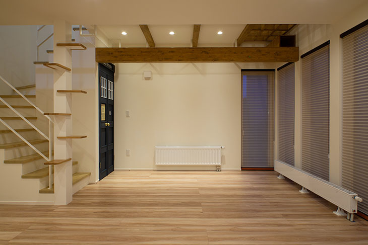 床暖房で床上に放熱器がないため、リビングのテラス窓のように床面まである大きな窓も採用しやすくなります。
