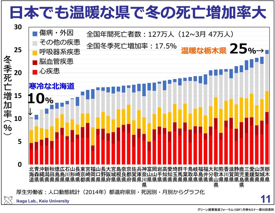 それから、暖房費を抑えるため、夜中や家に誰もいないときは運転を止めたとしても、家じゅうを適温に戻すのに大きなエネルギーを必要とするので、結局暖房費の節約にはつながらないのです。