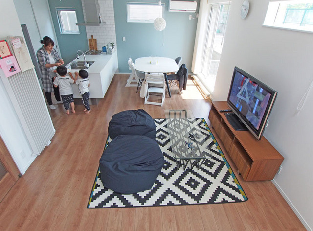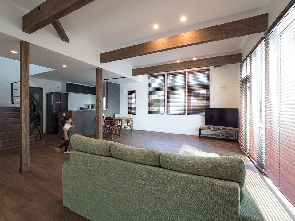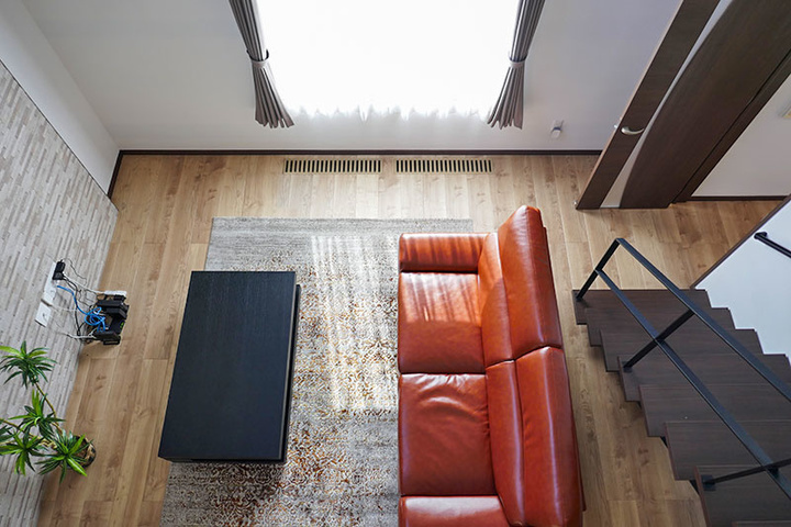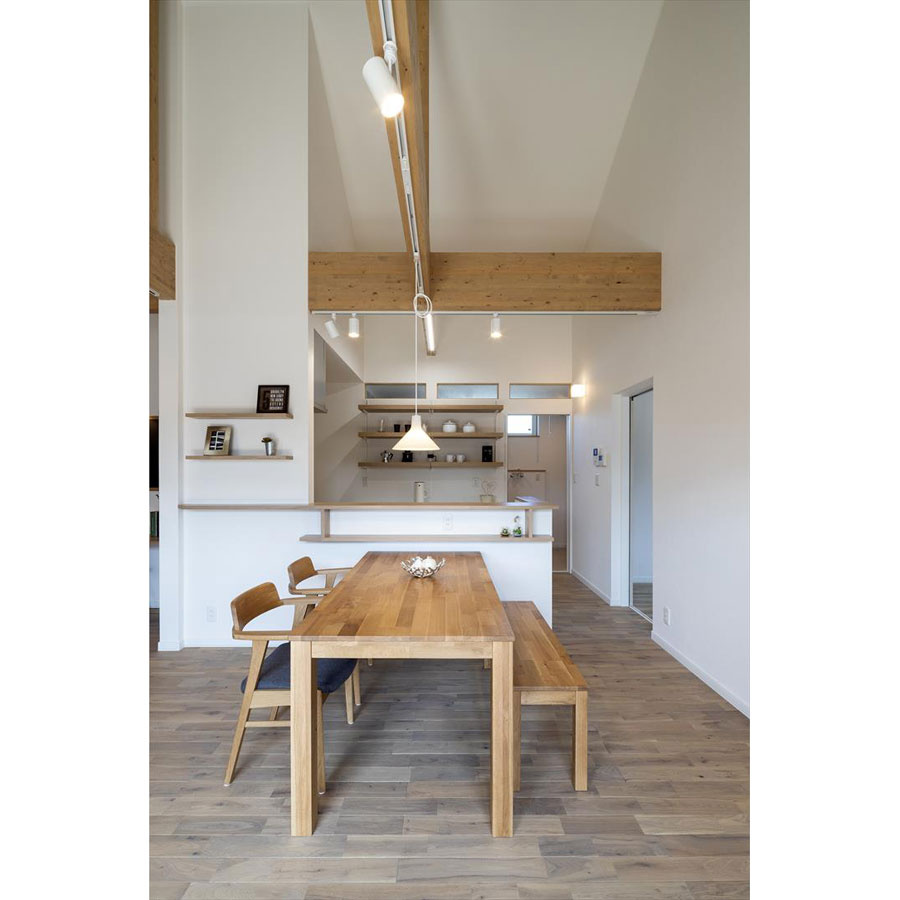 記事はこちら 独自床暖房の快適設計&高天井のリビングの家