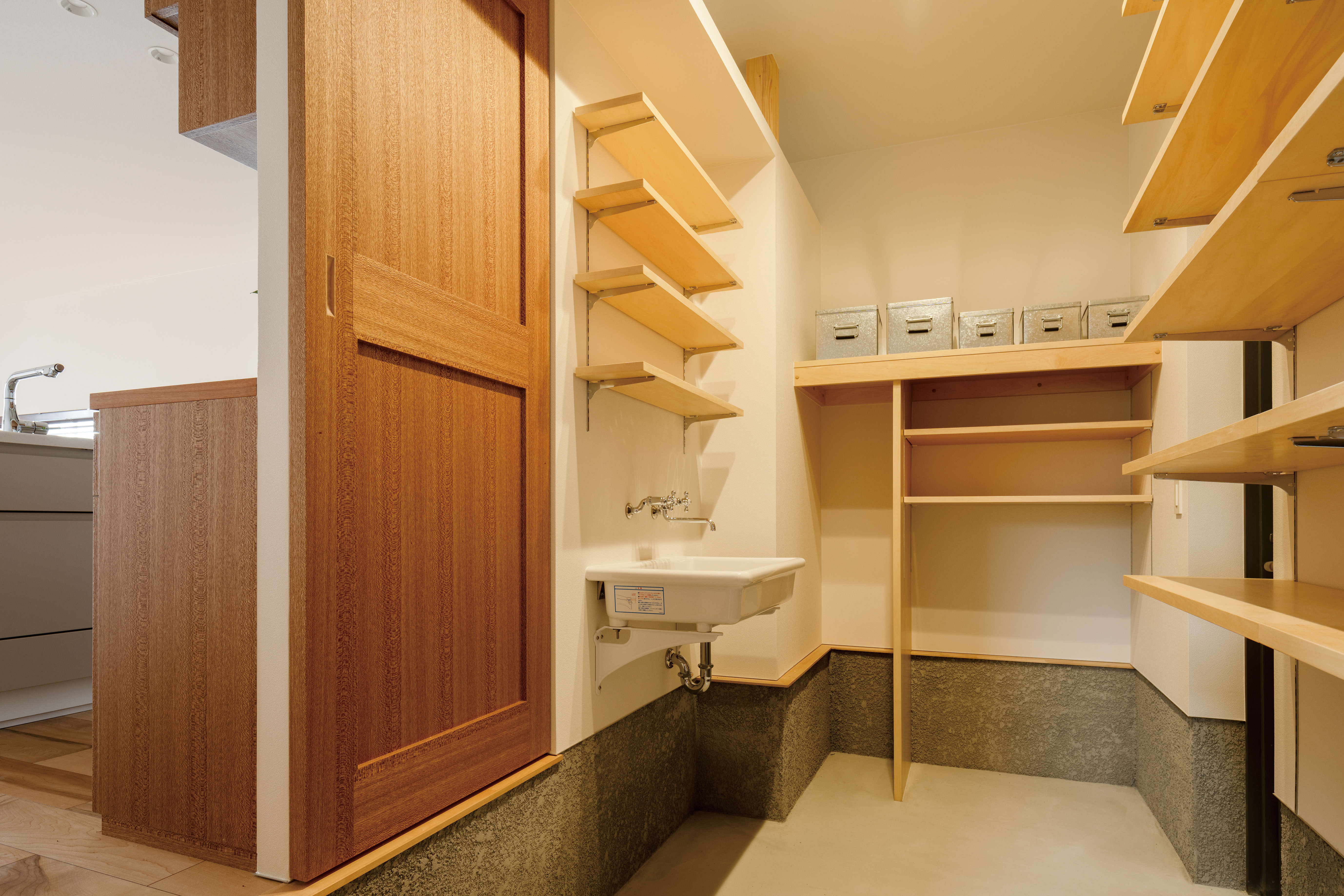 キッチン&玄関と隣接する土間。多目的に使えるよう、4畳程度の広さと水場を確保している