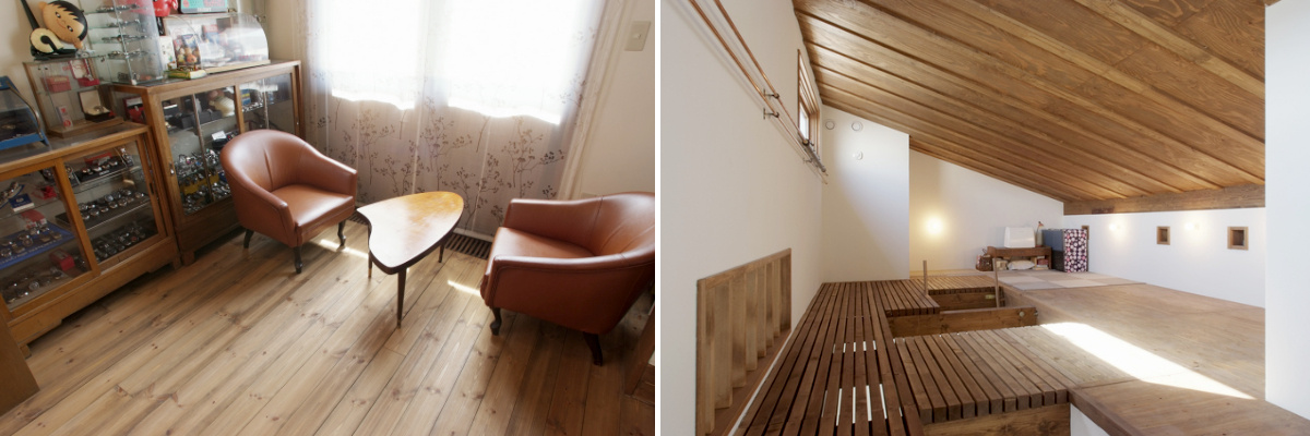 昭和の懐かしい腕時計やレコード、マンガや本など、ご主人が楽しさに心惹かれて子どもの頃から集めてきたこだわりのコレクションは、段ボールに入ったままアパートの押し入れの奥に眠っていました。一方、奥様も昭和モダンの香るティーカップ&ソーサーなど、暮らしを彩るモノや、価値のある本物素材の家具や生活雑貨がお気に入り。