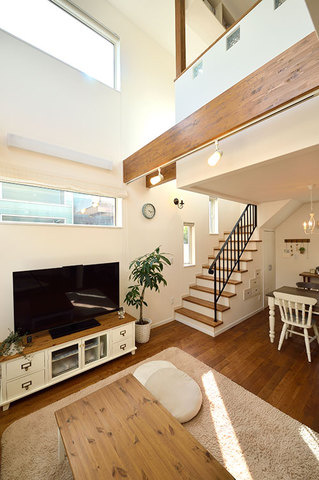 Hさんがイメージしていた住まいは手持ちのアンティーク調の白いキャビネットが似合う家。「基本はフレンチ。でもシャビー感をほどほどに抑えた今風な感じが理想でした。あまり頑張りすぎると女性はともかく男性は抵抗があるんじゃないかと」。 1年ほどいろいろな会社のモデルハウスを見て回り、最終的に辿り着いたのは女性目線の細やかな家づくりに定評があるイネスホーム。「作り込み過ぎない居心地良さそうなコーディネートが気に入りました」。Hさんの条件に合わせてアレンジしたのが現在の住まいです。