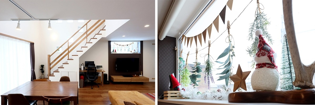 テレビ背面にある細長のFIX窓は季節の飾りを楽しむコーナーとして活用しています。