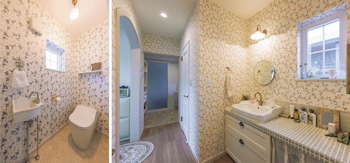 「輸入の壁紙には個性的なデザインがたくさん。色ごとに選べるサイトもあり便利です」と奥様。お気に入りの場所に仕上がりました。