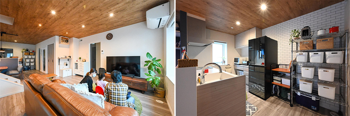 床や壁、天井などは色でメリハリをつけたかったというSさん。1階のLDKの床と天井には木目調のフローリングとクロスを採用しました。