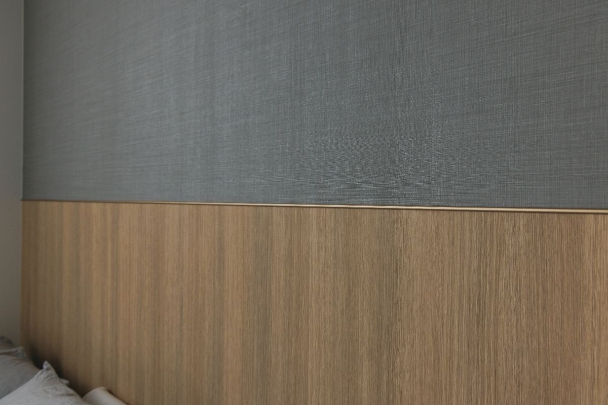 「ホテルのような雰囲気にしたくて、クロスとクロスの壁見切を金色にできませんかと相談したんです。真鍮で仕上げてもらい、思い通りの部屋になりました」