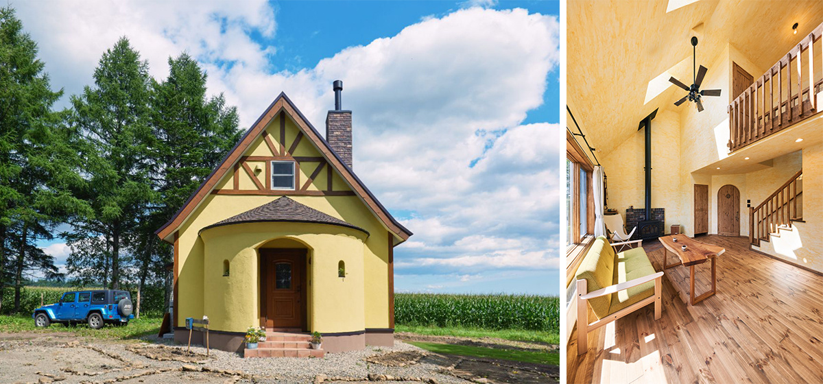 北海道が大好きで、2020年に上士幌町に移住したAさん夫妻。2022年、キャンプステイのできる宿兼ピッツェリアである「咲色~sairo~」の開業を目指して、一面に広がるトウモロコシ畑と牧草地の中にこの建物を建てました。外観はフランスのアルザス地方の村、コルマールの家のイメージです。
