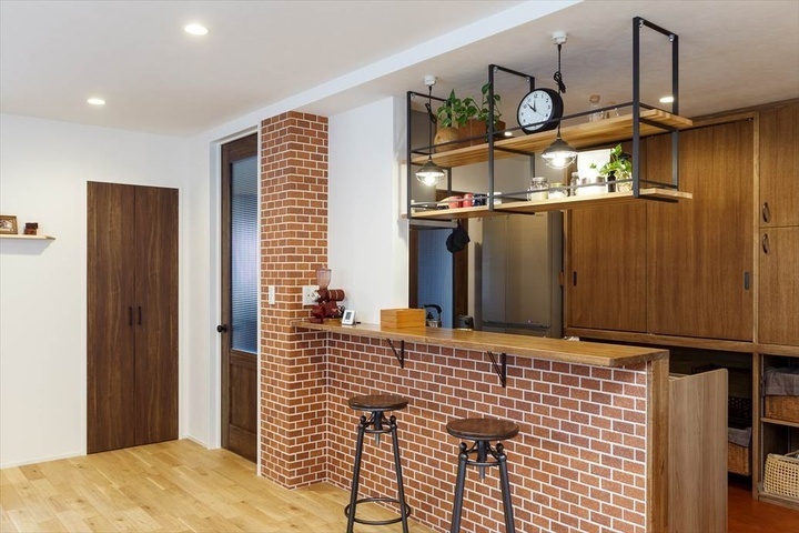 レンガ柄クロスを効果的に使ったカウンター(リヴスタイル)