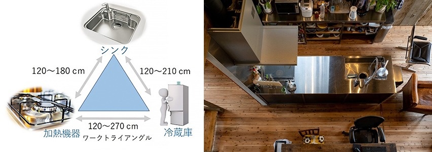 ・冷蔵庫や調理家電を使う際の距離「ワークトライアングル」を考慮する