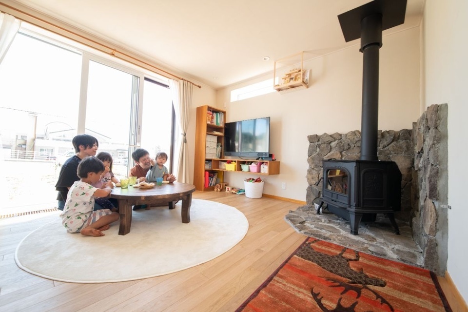 好きな家具や薪ストーブで寛ぐ広々LDK 比布町H邸/昭和木材