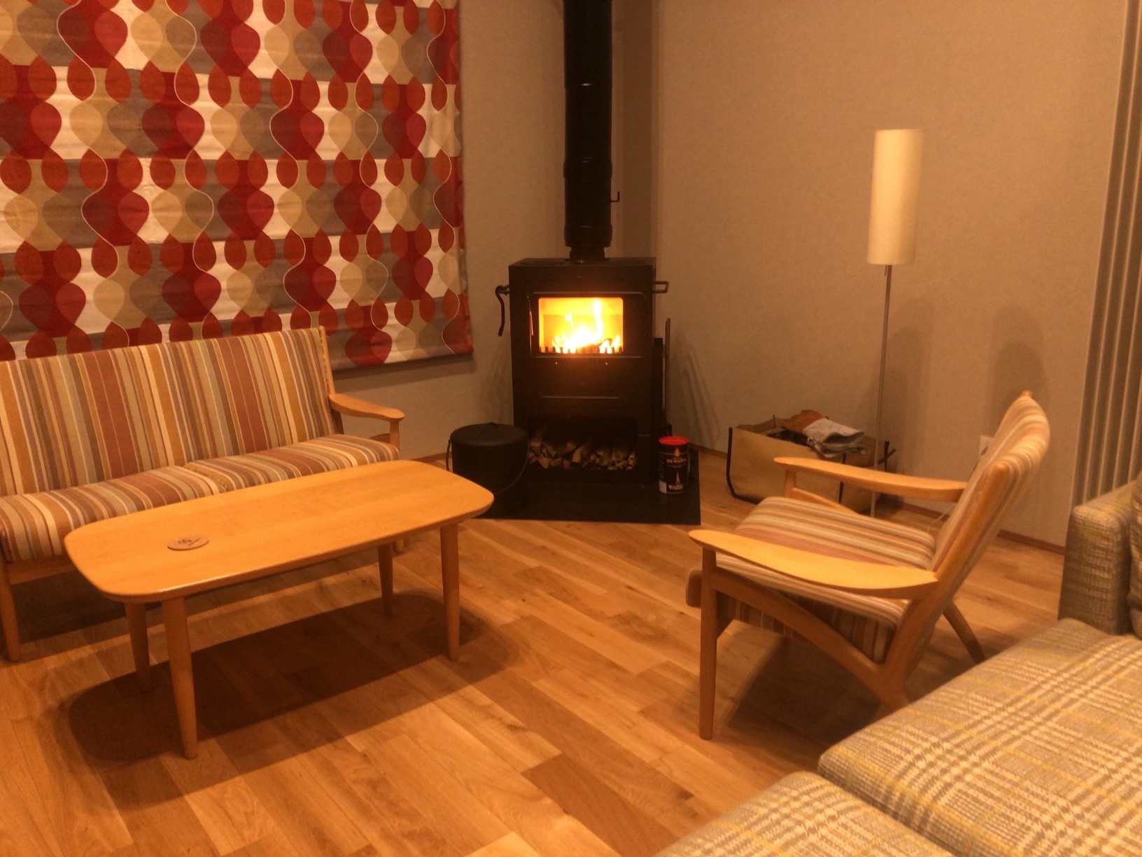 冬は、薪ストーブが体を温めてくれます。ゆらゆら揺れる炎と静かに燃える薪の音に癒されます。