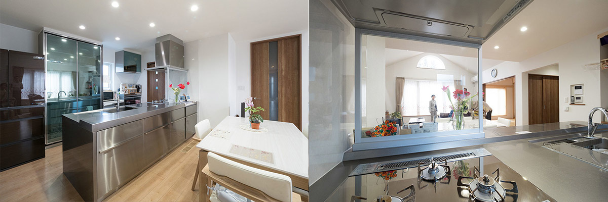 「使い勝手がとてもいい。それにこの窓からはきれいな夕日が見えるので、壁付けにしてよかったです」と、ご夫婦ともに満足されています。